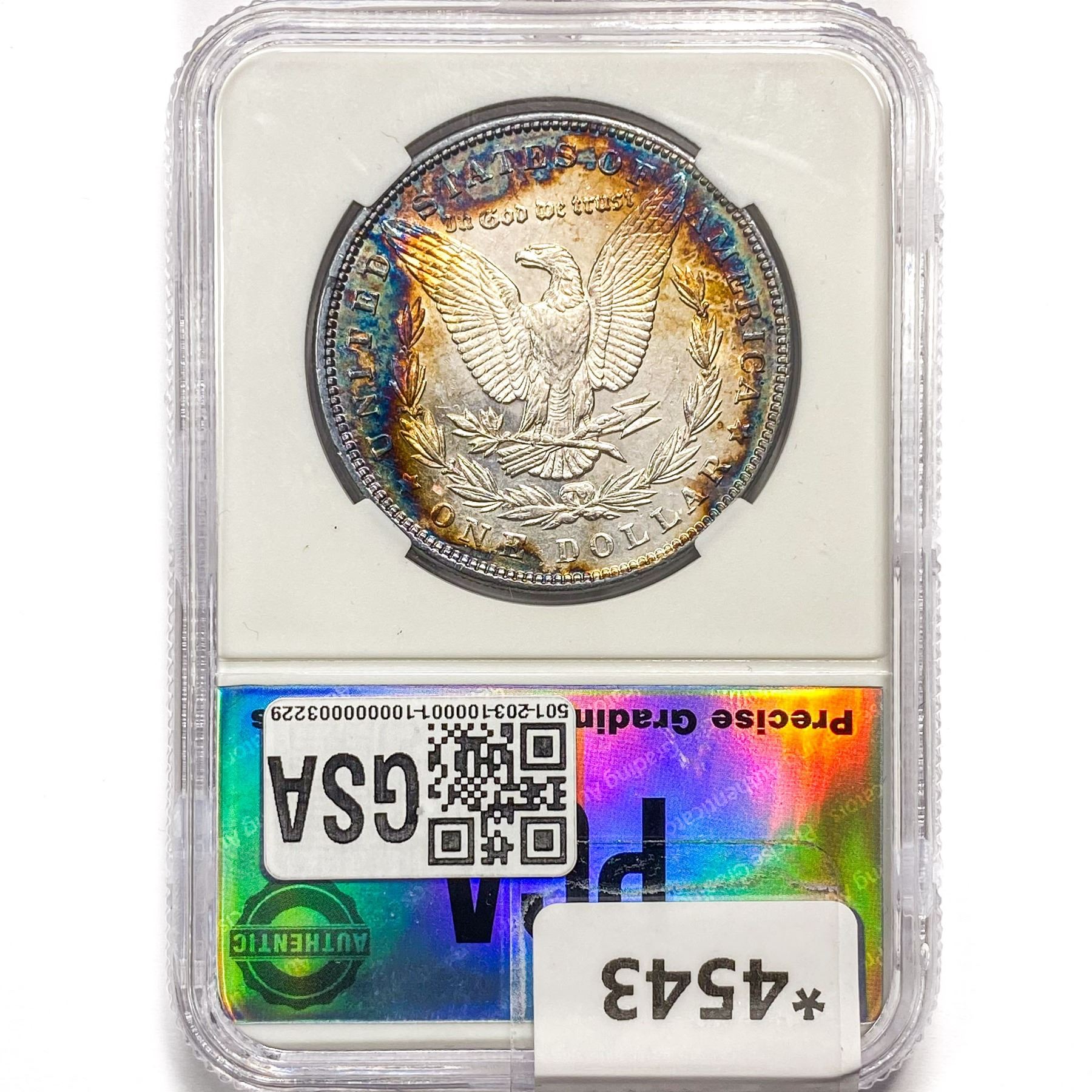 COINS AND CURRENCY LISTED IN GSA’S CATALOG AS GRADED AND ENCAPSULATED BY PCGS, NGC, ANACS, ICG, PCGS CURRENCY, PMG, PCGS BANKNOTE GRADING, CMC OR ANY OTHER THIRD-PARTY GRADING SERVICE ARE LIKEWISE SOLD “AS-IS” EXCEPT AS EXPRESSLY SET FORTH HEREIN. ALL THIRD-PARTY GRADING SERVICE GUARANTEES, INCLUDING AUTHENTICITY, ARE THE SOLE RESPONSIBILITY OF THE THIRD-PARTY GRADING SERVICE AND NOT WARRANTIES OR GUARANTEES OF GSA. BIDDERS SHOULD CONTACT THESE THIRD-PARTY GRADING SERVICES DIRECTLY WITH RESPECT TO ANY CLAIMS OR QUESTIONS THEY MAY HAVE CONCERNING THEIR GUARANTEES AND WARRANTIES. BIDDERS ACKNOWLEDGE AND AGREE THAT AUCTIONEER IS NOT BOUND BY OR LIABLE FOR ANY OPINION OR CERTIFICATION BY ANY THIRD-PARTY GRADING SERVICE. REMOVAL OF A PRODUCT FROM ITS PROTECTIVE CASING OR HOLDER OR ALTERATION OF ANY COIN HOLDER WAIVES ALL RIGHTS CONCERNING THE PRODUCT CONTAINED THEREIN.