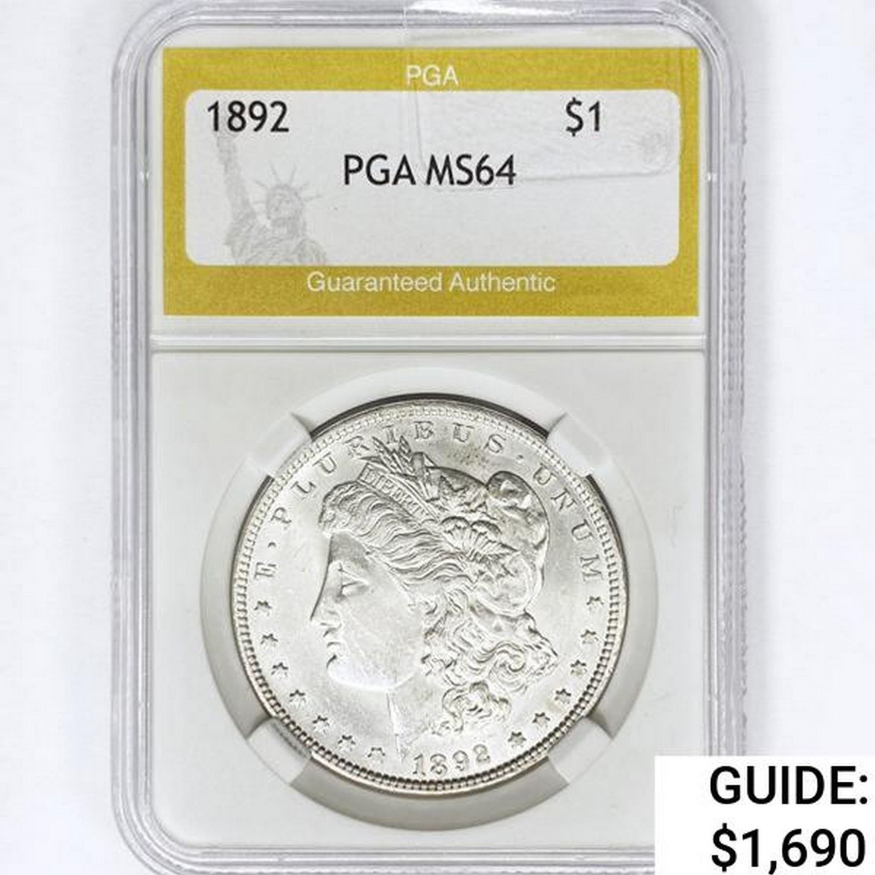 1892 Morgan Silver Dollar PGA MS64
