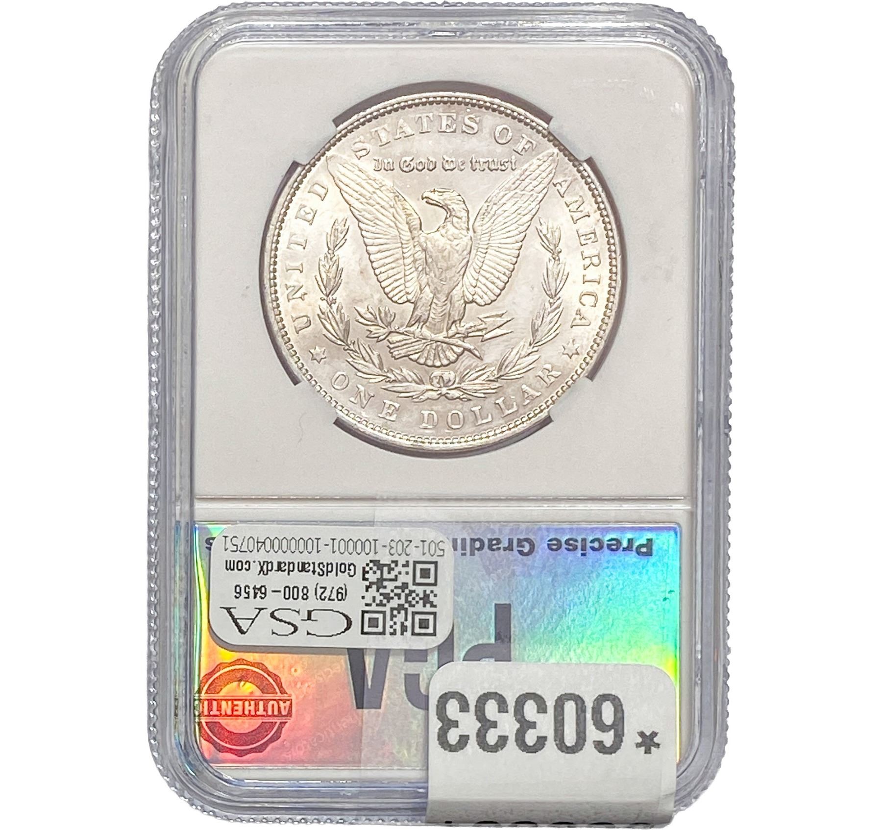 COINS AND CURRENCY LISTED IN GSA’S CATALOG AS GRADED AND ENCAPSULATED BY PCGS, NGC, ANACS, ICG, PCGS CURRENCY, PMG, PCGS BANKNOTE GRADING, CMC OR ANY OTHER THIRD-PARTY GRADING SERVICE ARE LIKEWISE SOLD “AS-IS” EXCEPT AS EXPRESSLY SET FORTH HEREIN. ALL THIRD-PARTY GRADING SERVICE GUARANTEES, INCLUDING AUTHENTICITY, ARE THE SOLE RESPONSIBILITY OF THE THIRD-PARTY GRADING SERVICE AND NOT WARRANTIES OR GUARANTEES OF GSA. BIDDERS SHOULD CONTACT THESE THIRD-PARTY GRADING SERVICES DIRECTLY WITH RESPECT TO ANY CLAIMS OR QUESTIONS THEY MAY HAVE CONCERNING THEIR GUARANTEES AND WARRANTIES. BIDDERS ACKNOWLEDGE AND AGREE THAT AUCTIONEER IS NOT BOUND BY OR LIABLE FOR ANY OPINION OR CERTIFICATION BY ANY THIRD-PARTY GRADING SERVICE. REMOVAL OF A PRODUCT FROM ITS PROTECTIVE CASING OR HOLDER OR ALTERATION OF ANY COIN HOLDER WAIVES ALL RIGHTS CONCERNING THE PRODUCT CONTAINED THEREIN.