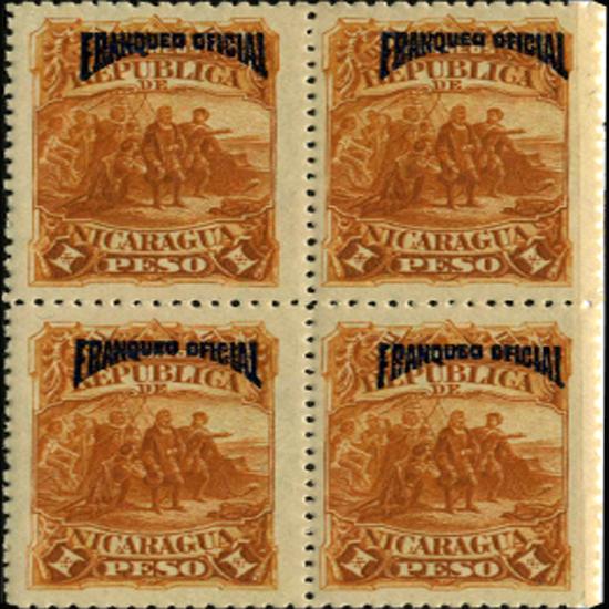 Mint; LH w/ 2 NH scarce mint block of 4 no hidden flaws; mis perf, left stamps wider; SC-O27