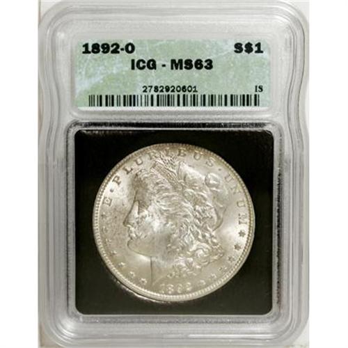 <B>1892-O $1 MS63 ICG.</B></I> NGC Census: (1236/1124). PCGS Population (1909/1481). Mintage: 2,744,000. Numismedia Wsl. Price for NGC/PCGS coin in MS63: $260. (#7216)<BR><BR><B>Coin Engraver:</B> George T. Morgan<BR><BR><b>Shipping:</b> Coins & Currency (<a target="_blank" href="http://www.heritageauctions.com/common/shipping.php">view shipping information</a>\)