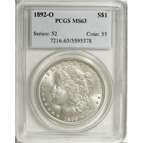 <B>1892-O $1 MS63 PCGS.</B></I> PCGS Population (1928/1550). NGC Census: (1245/1130). Mintage: 2,744,000. Numismedia Wsl. Price for NGC/PCGS coin in MS63: $260. (#7216)<BR><BR><B>Coin Engraver:</B> George T. Morgan<BR><BR><b>Shipping:</b> Coins & Currency (<a target="_blank" href="http://www.heritageauctions.com/common/shipping.php">view shipping information</a>)