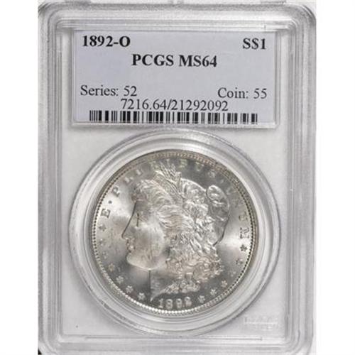 <B>1892-O $1 MS64 PCGS.</B></I> PCGS Population (1417/157). NGC Census: (1069/79). Mintage: 2,744,000. Numismedia Wsl. Price for NGC/PCGS coin in MS64: $580. (#7216)<BR><BR><B>Coin Engraver:</B> George T. Morgan<BR><BR><b>Shipping:</b> Coins & Currency (<a target="_blank" href="http://www.heritageauctions.com/common/shipping.php">view shipping information</a>)