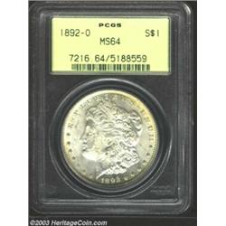 <TR><TD width="100%"><TABLE cellSpacing=1 cellPadding=3 width="100%" border=0><TBODY><TR><TD width="100%" bgColor=#79735c><FONT face=arial color=#ffffff size=3><B>Description</B> </FONT></TD></TR><TR><TD width="100%" bgColor=#ffffff><FONT face=arial size=2><B>1892-O $1 MS64 PCGS.</B></I> Distinctly flat above Liberty's ear, and on the eagle's breast, there is light dappled and peripheral patina on the obverse, along with a charcoal toning streak which extends from the right obverse rim to the upper left rim. The cheek has a few trivial ticks, and some faint roller marks (as struck), which travel diagonally from upper left to lower right. The reverse is quite clean, with a wispy pinscratch in the upper field, below STATES, as the only mentionable distraction. </FONT></TD></TR></TBODY></TABLE></TD></TR></TBODY></TABLE><BR><A name=PricesRealized></A><TABLE cellSpacing=0 cellPadding=0 width="100%" bgColor=#000000 border=0><TBODY><TR><TD width="100%"><TABLE cellSpacing=1 cellPadding=3 width="100%" border=0><TBODY><TR><TD width="100%" bgColor=#79735c><A name=PR><FONT face=arial color=#ffffff size=3><B>Previous Prices from Heritage Auctions</B> </FONT></A></TD></TR><TR><TD bgColor=#f6f6ed><TABLE cellSpacing=0 cellPadding=0 width="100%" border=1><TBODY><TR><TD align=middle width="33%"><B>Date</B></TD><TD align=middle width="33%"><B>Service</B></TD><TD align=middle width="33%"><B>Price</B></TD></TR><TR bgColor=whitesmoke><TD width="33%"><B>03/01/2003</B></TD><TD width="33%">PCGS</TD><TD width="33%">$690.00</TD></TR><TR bgColor=whitesmoke><TD width="33%"><B>03/01/2003</B></TD><TD width="33%">PCGS</TD><TD width="33%">$690.00</TD></TR><TR bgColor=whitesmoke><TD width="33%"><B>03/01/2003</B></TD><TD width="33%">PCGS</TD><TD width="33%">$862.50</TD></TR><TR bgColor=whitesmoke><TD width="33%"><B>03/23/2003</B></TD><TD width="33%">PCGS</TD><TD width="33%">$448.50</TD></TR><TR bgColor=whitesmoke><TD width="33%"><B>03/23/2003</B></TD><TD width="33%">PCGS</TD><TD width="33%">$448.50</TD></TR><TR bgColor=whitesmoke><TD width="33%"><B>01/21/2003</B></TD><TD width="33%">PCGS</TD><TD width="33%">$402.50</TD></TR><TR bgColor=whitesmoke><TD width="33%"><B>01/11/2003</B></TD><TD width="33%">PCGS</TD><TD width="33%">$460.00</TD></TR><TR bgColor=whitesmoke><TD width="33%"><B>01/11/2003</B></TD><TD width="33%">PCGS</TD><TD width="33%">$460.00</TD></TR><TR bgColor=whitesmoke><TD width="33%"><B>11/23/2002</B></TD><TD width="33%">PCGS</TD><TD width="33%">$747.50</TD></TR><TR bgColor=whitesmoke><TD width="33%"><B>11/12/2002</B></TD><TD width="33%">PCGS</TD><TD width="33%">$403.65</TD></TR><TR bgColor=whitesmoke><TD width="33%"><B>11/12/2002</B></TD><TD width="33%">PCGS</TD><TD width="33%">$403.65</TD></TR><TR bgColor=whitesmoke><TD width="33%"><B>09/28/2002</B></TD><TD width="33%">PCGS</TD><TD width="33%">$402.50</TD></TR><TR bgColor=whitesmoke><TD width="33%"><B>09/28/2002</B></TD><TD width="33%">PCGS</TD><TD width="33%">$529.00</TD></TR><TR bgColor=whitesmoke><TD width="33%"><B>09/28/2002</B></TD><TD width="33%">PCGS</TD><TD width="33%">$529.00</TD></TR><TR bgColor=whitesmoke><TD width="33%"><B>02/01/2001</B></TD><TD width="33%">PCGS</TD><TD width="33%">$1,380.00</TD></TR><TR bgColor=whitesmoke><TD width="33%"><B>08/06/2002</B></TD><TD width="33%">PCGS</TD><TD width="33%">$494.50</TD></TR><TR bgColor=whitesmoke><TD width="33%"><B>08/06/2002</B></TD><TD width="33%">PCGS</TD><TD width="33%">$494.50</TD></TR><TR bgColor=whitesmoke><TD width="33%"><B>07/30/2002</B></TD><TD width="33%">PCGS</TD><TD width="33%">$346.15</TD></TR><TR bgColor=whitesmoke><TD width="33%"><B>07/30/2002</B></TD><TD width="33%">PCGS</TD><TD width="33%">$346.15</TD></TR><TR bgColor=whitesmoke><TD width="33%"><B>07/30/2002</B></TD><TD width="33%">PCGS</TD><TD width="33%">$346.15</TD></TR><TR bgColor=whitesmoke><TD width="33%"><B>07/30/2002</B></TD><TD width="33%">PCGS</TD><TD width="33%">$346.15</TD></TR><TR bgColor=whitesmoke><TD width="33%"><B>07/30/2002</B></TD><TD width="33%">PCGS</TD><TD width="33%">$460.00</TD></TR><TR bgColor=whitesmoke><TD width="33%"><B>07/30/2002</B></TD><TD width="33%">PCGS</TD><TD width="33%">$460.00</TD></TR><TR bgColor=whitesmoke><TD width="33%"><B>06/08/2002</B></TD><TD width="33%">PCGS</TD><TD width="33%">$425.50</TD></TR><TR bgColor=whitesmoke><TD width="33%"><B>04/28/2002</B></TD><TD width="33%">PCGS</TD><TD width="33%">$603.75</TD></TR><TR bgColor=whitesmoke><TD width="33%"><B>04/28/2002</B></TD><TD width="33%">PCGS</TD><TD width="33%">$603.75</TD></TR><TR bgColor=whitesmoke><TD width="33%"><B>02/12/2002</B></TD><TD width="33%">PCGS</TD><TD width="33%">$379.50</TD></TR><TR bgColor=whitesmoke><TD width="33%"><B>10/01/1995</B></TD><TD width="33%">PCGS</TD><TD width="33%">$660.00</TD></TR><TR bgColor=whitesmoke><TD width="33%"><B>10/01/1995</B></TD><TD width="33%">PCGS</TD><TD width="33%">$660.00</TD></TR><TR bgColor=whitesmoke><TD width="33%"><B>06/02/2001</B></TD><TD width="33%">PCGS</TD><TD width="33%">$373.75</TD></TR><TR bgColor=whitesmoke><TD width="33%"><B>09/10/1993</B></TD><TD width="33%">PCGS</TD><TD width="33%">$412.50</TD></TR><TR bgColor=whitesmoke><TD width="33%"><B>09/10/1993</B></TD><TD width="33%">PCGS</TD><TD width="33%">$412.50</TD></TR><TR bgColor=whitesmoke><TD width="33%"><B>04/03/2001</B></TD><TD width="33%">PCGS</TD><TD width="33%">$400.00</TD></TR><TR bgColor=whitesmoke><TD width="33%"><B>02/06/2001</B></TD><TD width="33%">PCGS</TD><TD width="33%">$371.00</TD></TR><TR bgColor=whitesmoke><TD width="33%"><B>02/06/2001</B></TD><TD width="33%">PCGS</TD><TD width="33%">$371.00</TD></TR><TR bgColor=whitesmoke><TD width="33%"><B>06/04/1999</B></TD><TD width="33%">PCGS</TD><TD width="33%">$460.00</TD></TR><TR bgColor=whitesmoke><TD width="33%"><B>11/19/1999</B></TD><TD width="33%">PCGS</TD><TD width="33%">$356.50</TD></TR><TR bgColor=whitesmoke><TD width="33%"><B>11/19/1999</B></TD><TD width="33%">PCGS</TD><TD width="33%">$356.50</TD></TR><TR bgColor=whitesmoke><TD width="33%"><B>01/30/2001</B></TD><T