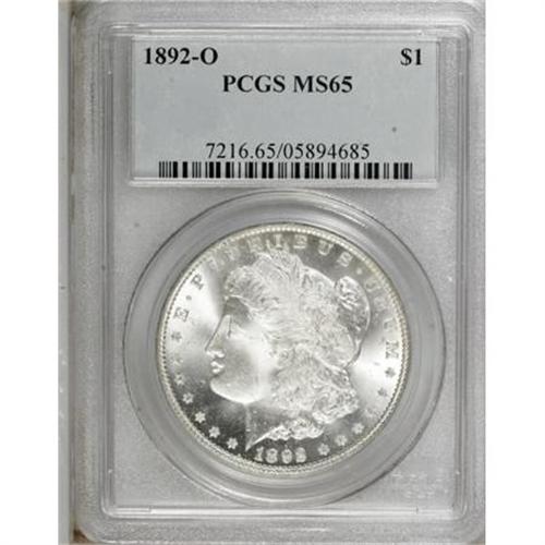 <B>1892-O $1 MS65 PCGS. CAC.</B></I> This lustrous Gem appears brilliant at first glance, but traces of gold toning appear upon further inspection. The strike is only slightly soft at the centers, despite the New Orleans reputation for indifferent production during the 1890s. Of greater significance is the exemplary preservation, particularly on the smooth center of the cheek.<BR><BR><B>Coin Engraver:</B> George T. Morgan<BR><BR><b>Shipping:</b> Coins & Currency (<a target="_blank" href="http://www.heritageauctions.com/common/shipping.php">view shipping information</a>)