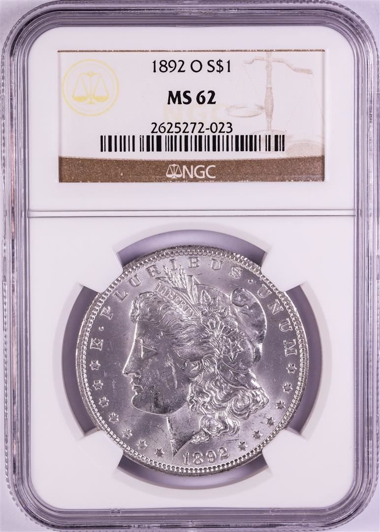 One 1892-O $1 Morgan Silver Dollar Coin NGC MS62. NGC Certified.