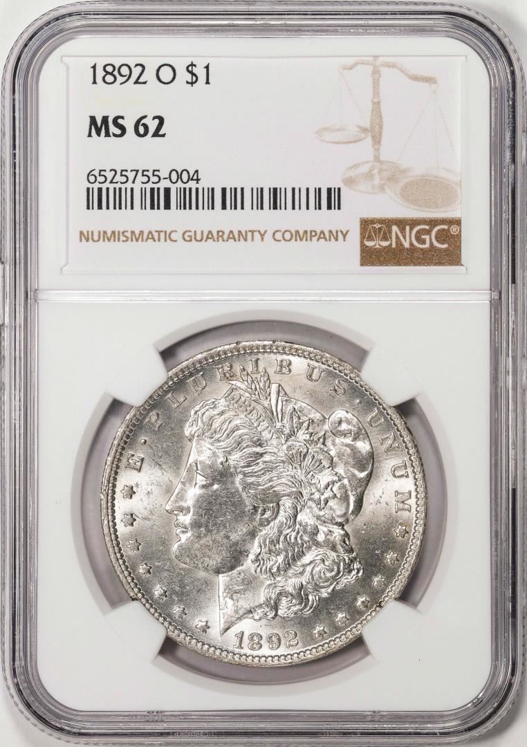 One 1892-O $1 Morgan Silver Dollar Coin NGC MS62. NGC Certified.