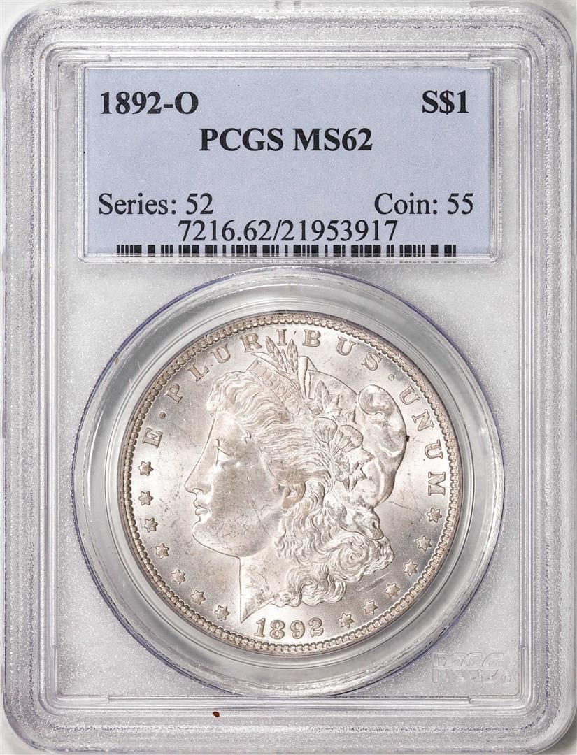 One 1892-O $1 Morgan Silver Dollar Coin PCGS MS62. PCGS Graded.