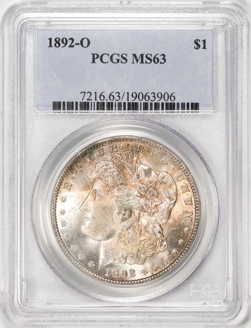 One 1892-O $1 Morgan Silver Dollar Coin PCGS MS63. PCGS Graded.