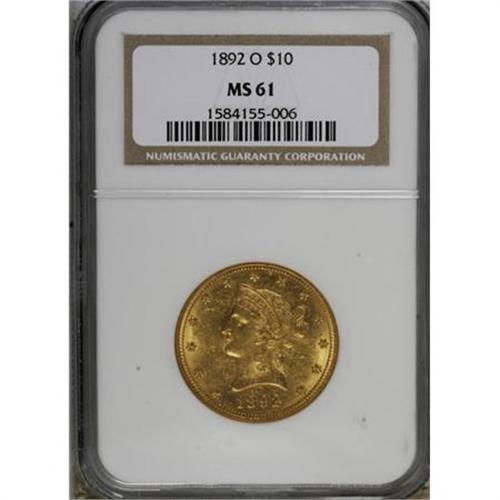 <B>1892-O $10 MS61 NGC.</B></I> NGC Census: (242/115). PCGS Population (96/109). Mintage: 28,688. Numismedia Wsl. Price for NGC/PCGS coin in MS61: $900. (#8723)<BR><BR><B>Coin Engraver:</B> Christian Gobrecht<BR><BR><b>Shipping:</b> Coins & Currency (<a target="_blank" href="http://www.heritageauctions.com/common/shipping.php">view shipping information</a>)