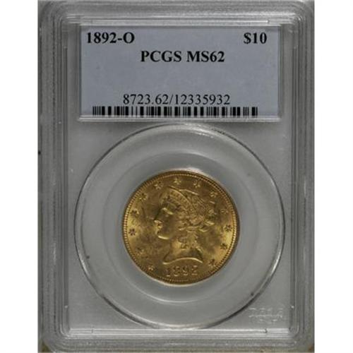 <B>1892-O $10 MS62 PCGS.</B></I> This low mintage New Orleans eagle has unbroken luster, and is well struck save for the eagle's claws and fletchings. Marks are present, but none singularly detract. PCGS has certified only four examples finer (3/08).<BR><BR><B>Coin Engraver:</B> Christian Gobrecht<BR><BR><b>Shipping:</b> Coins & Currency (<a target="_blank" href="http://www.heritageauctions.com/common/shipping.php">view shipping information</a>)