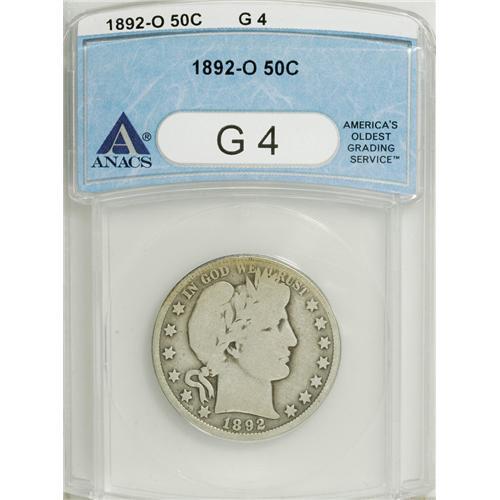 <B>1892-O 50C G4 ANACS.</B></I> NGC Census: (13/199). PCGS Population (7/209). Mintage: 390,000. Numismedia Wsl. Price: $217. (#6462)<BR><BR><b>Shipping:</b> Coins & Currency (<a target="_blank" href="http://www.heritageauctions.com/common/shipping.php">view shipping information</a>)