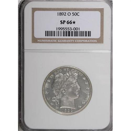 <B>1892-O 50C SP66 <img src="/images/star.gif" width="10" height="10" alt="" border="0"> NGC.</B></I> Unknown to Walter Breen and to our knowledge unrecorded in any reference, this is a coin that Breen would have said "carries its own credentials." In his 1977 proof reference, Breen only records an 1892-O dollar as a Branch Mint proof. There is no mention of a half dollar. However, there is more of a reason for the New Orleans Mint to have produced a specimen half dollar than a dollar. It may well be that the half dollar was produced first, and the silver dollar struck as an afterthought. The significance of the 1892-O half dollar was addressed extensively in an article by Paul M. Green in the May 2, 2006, issue of <I>Numismatic News</B></I>:<BR><BR>" ...the written information of the time suggests there was quite a bit of interest in the Columbian Exposition half dollars, which might have been natural as they were the first half dollar commemorative of the United States. The new dimes, quarters and half dollars for circulation were apparently not as interesting.<BR><BR>"There should have been some interest in the 390,000 Barber halves produced at New Orleans that year if for no other reason than the fact that half dollar production at New Orleans was unusual. The New Orleans facility had produced its last half dollar three decades earlier in 1861, when the Civil War was dividing the nation. <BR><BR>"The story behind the lack of New Orleans half dollar production was a simple one. After falling to state of Louisiana forces in 1861 and then being turned over to the Confederate States of America, the New Orleans facility had basically been allowed to decay. The same happened to the other Southern facilities, at Dahlonega, Ga., and Charlotte, N.C. What made New Orleans different was that it managed to come back to life, resuming U.S. coin production in the late 1870s.<BR><BR>"The New Orleans facility had another chance, unlike the Dahlonega and Charlotte Mints, for a couple reasons. The first was that there was some complaint in New Orleans that the deal that had given the government the land for the facility required that there be coin production. The second was that New Orleans had produced silver and gold issues, unlike Dahlonega and Charlotte which produced only gold. That entered the picture because it was becoming clear that the country had a problem with too much silver thanks to the Comstock Lode. ... The GÇÿO' Mint was, however, basically limited to silver dollars and gold until 1892 when the facility expanded to produce the new Barber issues."<BR><BR> The hiatus of 31 years was reason enough to strike a specimen half dollar. A Branch Mint proof 1891-O quarter was listed in Breen's 1977 <I>Encyclopedia</B></I>, an issue that was stuck after a similar 31-year hiatus. While we do not have a record of a Branch Mint proof dime, logic would dictate that such a coin should have been struck also since none had been produced since 1860 in New Orleans. <BR> The surfaces of this piece are definitely different than any other 1892-O half dollar we have seen, and for that matter differ from any other Barber half except proofs. Brilliant throughout, the absence of color makes the finish of this piece accessible to all who view it. The fields are deep and shimmer with mirror-like intensity, once again unlike the finish on any Barber half except a proof. The devices are frosted and, in fact, a Cameo designation would not be out of line. <BR> Twelve years ago, we had the opportunity to closely examine the Branch Mint proof dollars from the Anita Maxwell Trust. One of the interesting conclusions we came to was that these pieces were definitely produced for some special purpose; however, the quality of die preparation in the various branch mints was uniformly not on par with that seen on proofs struck in the Philadelphia Mint. One difference was the presence of unfinished areas of die polish on the dollars. On this half dollar, however, the only area that we see that is not completely polished is between the leaves on the olive branch. However, a similar tightly detailed area between the arrows does show complete die polishing. Close examination of this piece shows that the fields were heavily polished. So much so, in fact, that several of the devices appear attenuated (the stars above the eagle), and others (such as the stars on each side) have a "recessed" appearance. We attribute this to heavy polishing of the dies, and a conscious effort to produce a uniformly mirror-like specimen. What is curious is the lack of highpoint detail. One would think after so much effort was put into die preparation, the resultant coin would be fully struck. But what is seen here is a piece that shows typical O-mint softness on the upper lip of Liberty, the right (facing) leg of the eagle and claw. If this coin was struck twice, as would be expected from a specimen, then the dies were set too far apart to achieve complete definition. Most likely, though, the piece was struck only once--perhaps the New Orleans Mint personnel were unfamiliar with the practice of striking proofs twice, or striking detail was a secondary consideration to achieving a mirrorlike coin. <BR> This is a rare opportunity for the collector of Branch Mint proofs. Such pieces are seldom offered for sale at public auction and always generate a great deal of excitement and interest when they are available. It is not a stretch to state that after all these years, this is likely a unique product from the New Orleans Mint. <BR><BR><b>Shipping:</b> Coins & Currency (<a target="_blank" href="http://www.heritageauctions.com/common/shipping.php">view shipping information</a>)