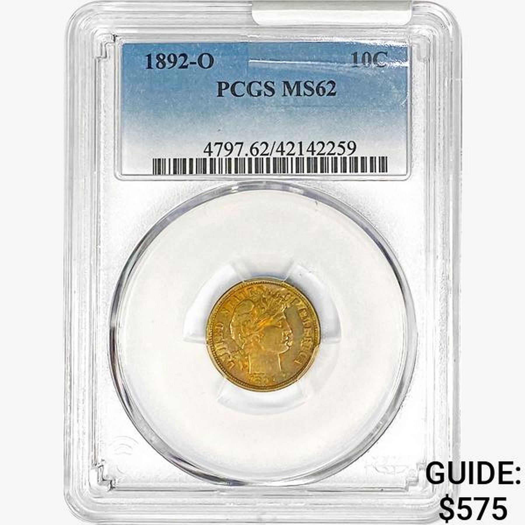 1892-O Barber Dime PCGS MS62