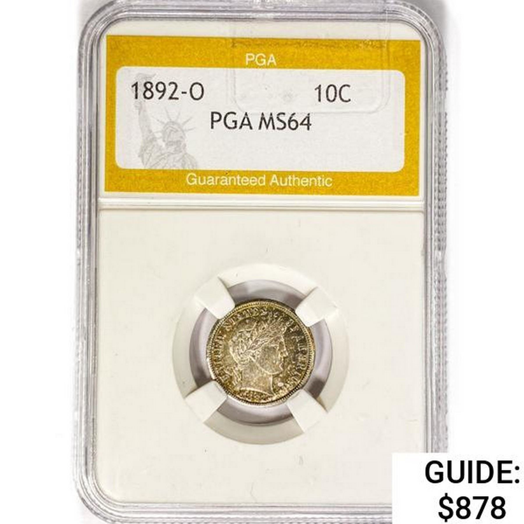 1892-O Barber Dime PGA MS64