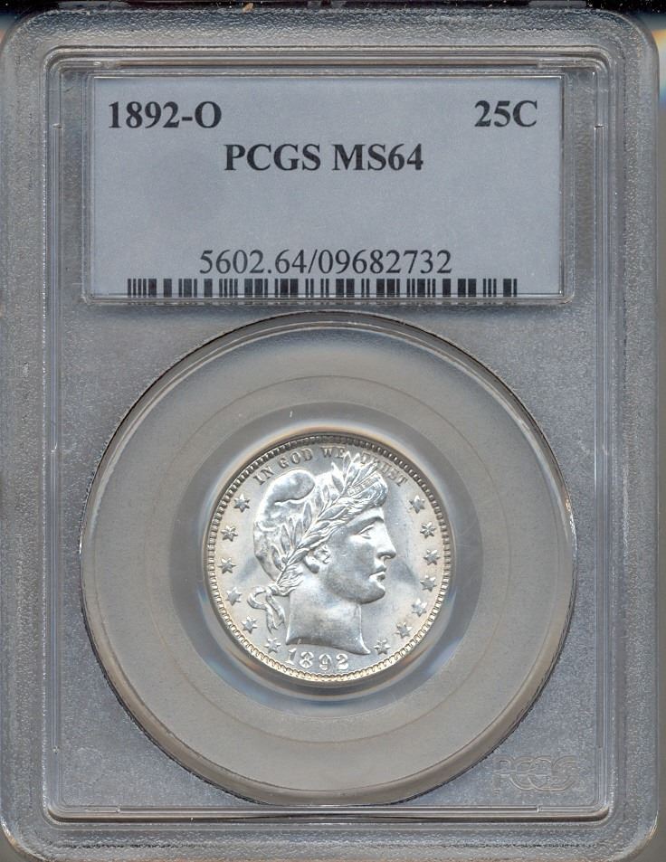 One 1892-O Barber Quarter Coin PCGS MS64.
