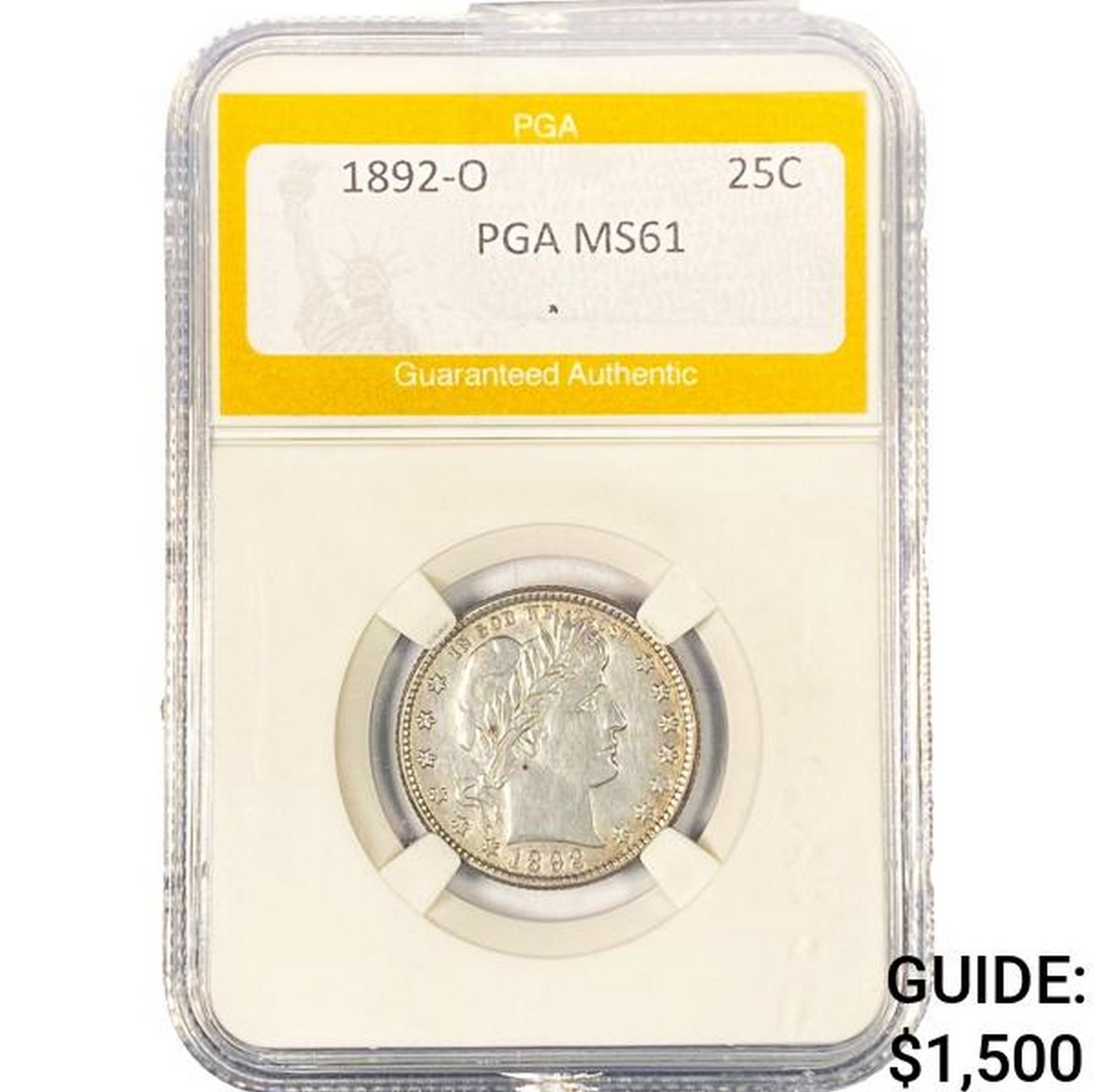 1892-O Barber Quarter PGA MS61