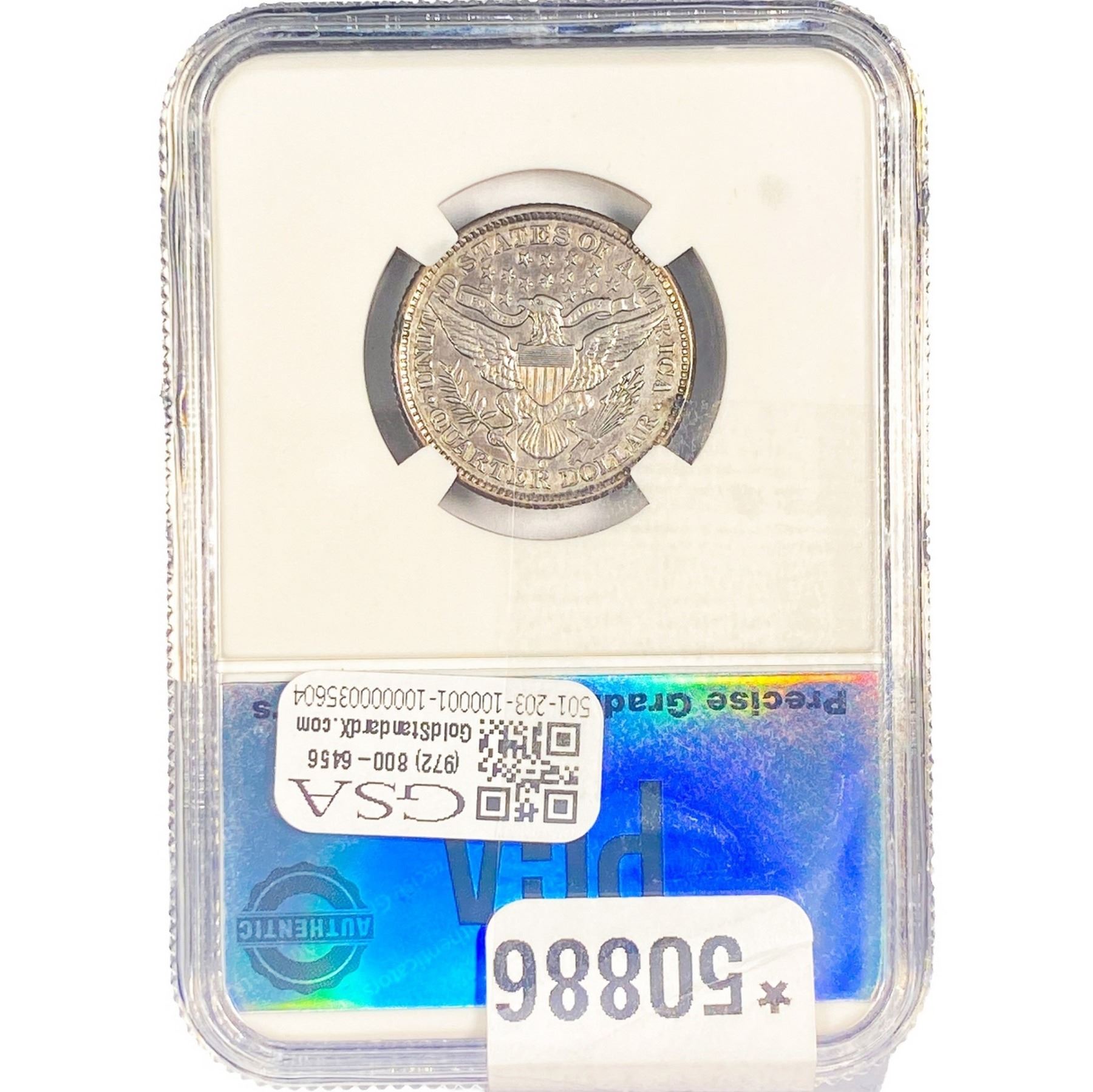 e. Coins sold referencing a third-party grading service are sold “AS IS” without any express or implied warranty, except for a guarantee by GSA that they are genuine. Removal or alteration of the holder, voids all of Bidder’s claims concerning that Product. Certain warranties may be available from the grading services and Bidders are referred to them for further details: Numismatic Guaranty Corporation (NGC), PO Box 4776, Sarasota, FL 34230, www.ngccoin.com/services/writtenguarantee.asp; Professional Coin Grading Services (PCGS), PO Box 9458, Newport Beach, CA 92658, www.pcgs.com/guarantee.html; ANACS, 6555 S. Kenton St., Ste. 303, Englewood, CO 80111; and Independent Coin Grading Co. (ICG), 7901 East Bellview, Ave., Suite 50, Englewood, CO 80111.