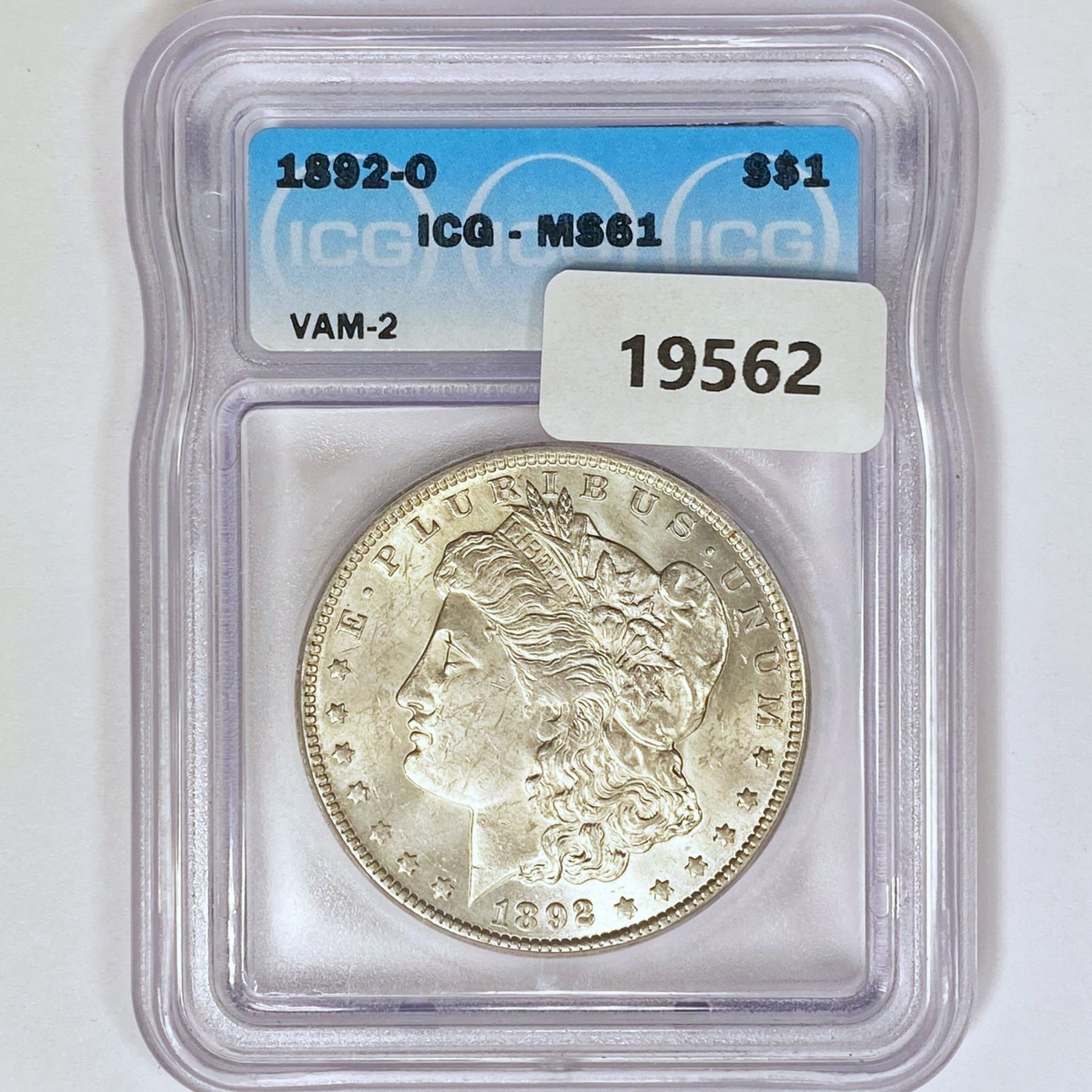 1892-O Morgan Silver Dollar ICG MS61 VAM-2