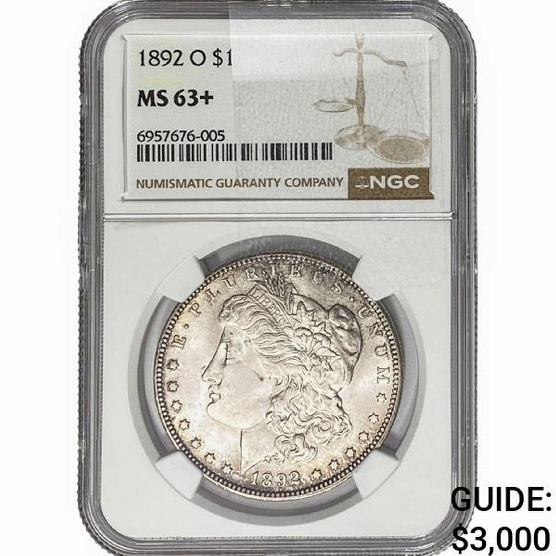 1892-O Morgan Silver Dollar NGC MS63+