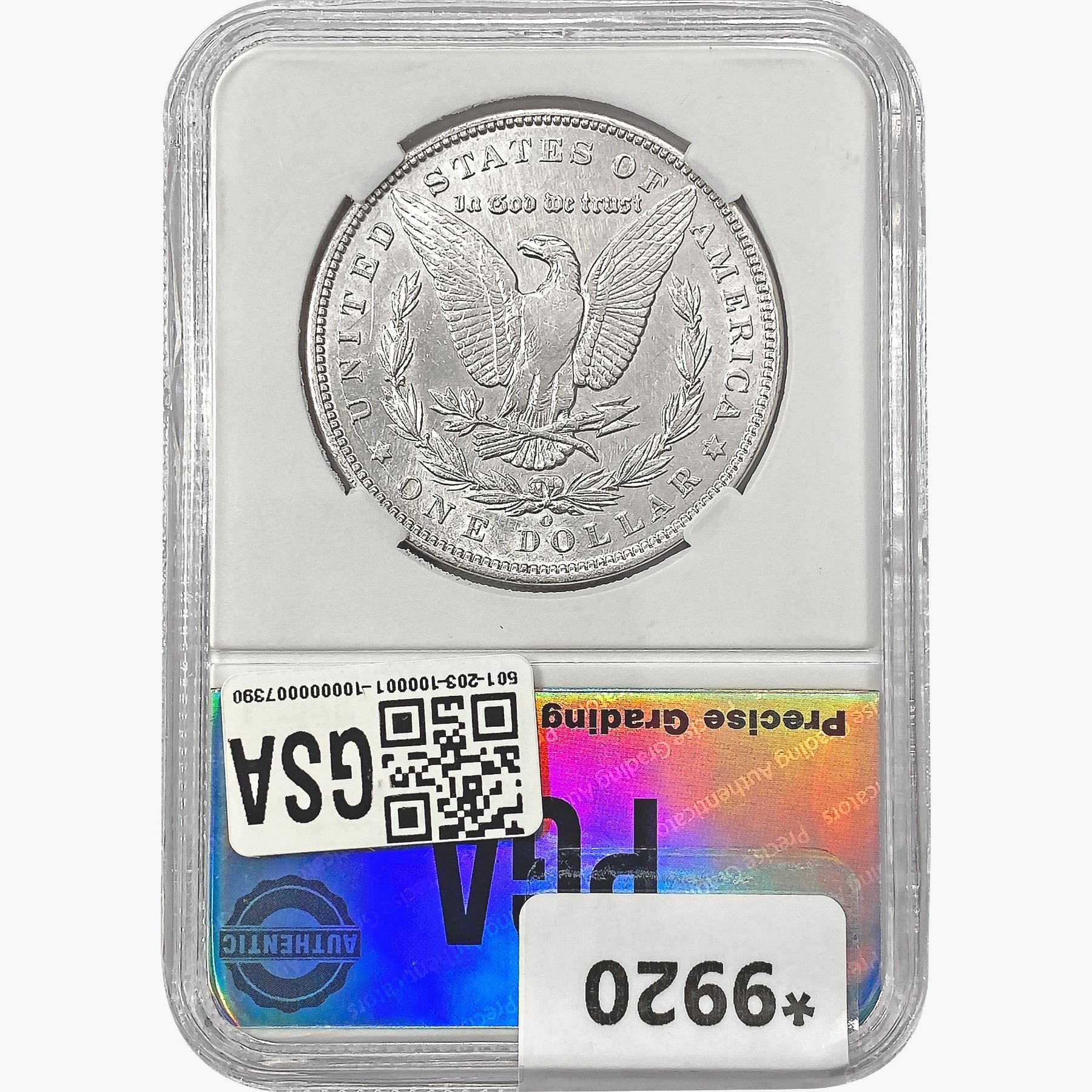 1892-O Morgan Silver Dollar PGA MS60