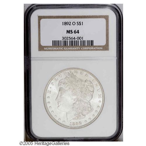 1892-O S$1 MS64 NGC. Faint gold color visits this lust 1892-O[S$1] MS64 NGC.