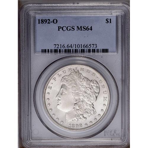 <B>1892-O<img border='0' src='http://www.heritagecoins.com/images/star.gif' width=10 height=10>$1> MS64 PCGS.</B></I> A lustrous and clean-cheeked near-Gem with the expected moderate softness of strike in the centers. Lightly toned aside from a small spot relegated to the reverse rim at 1 o'clock.