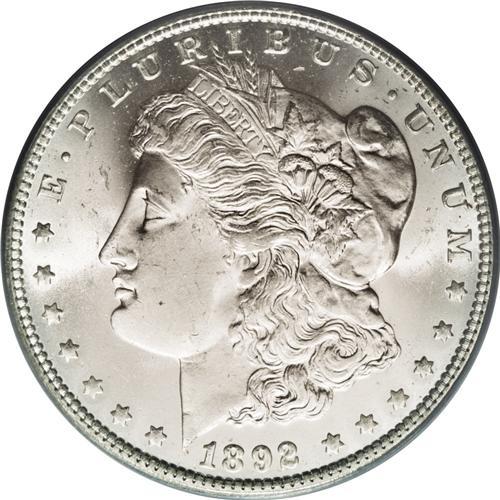 1892-O S$1 MS65 PCGS. Virtually completely white, with