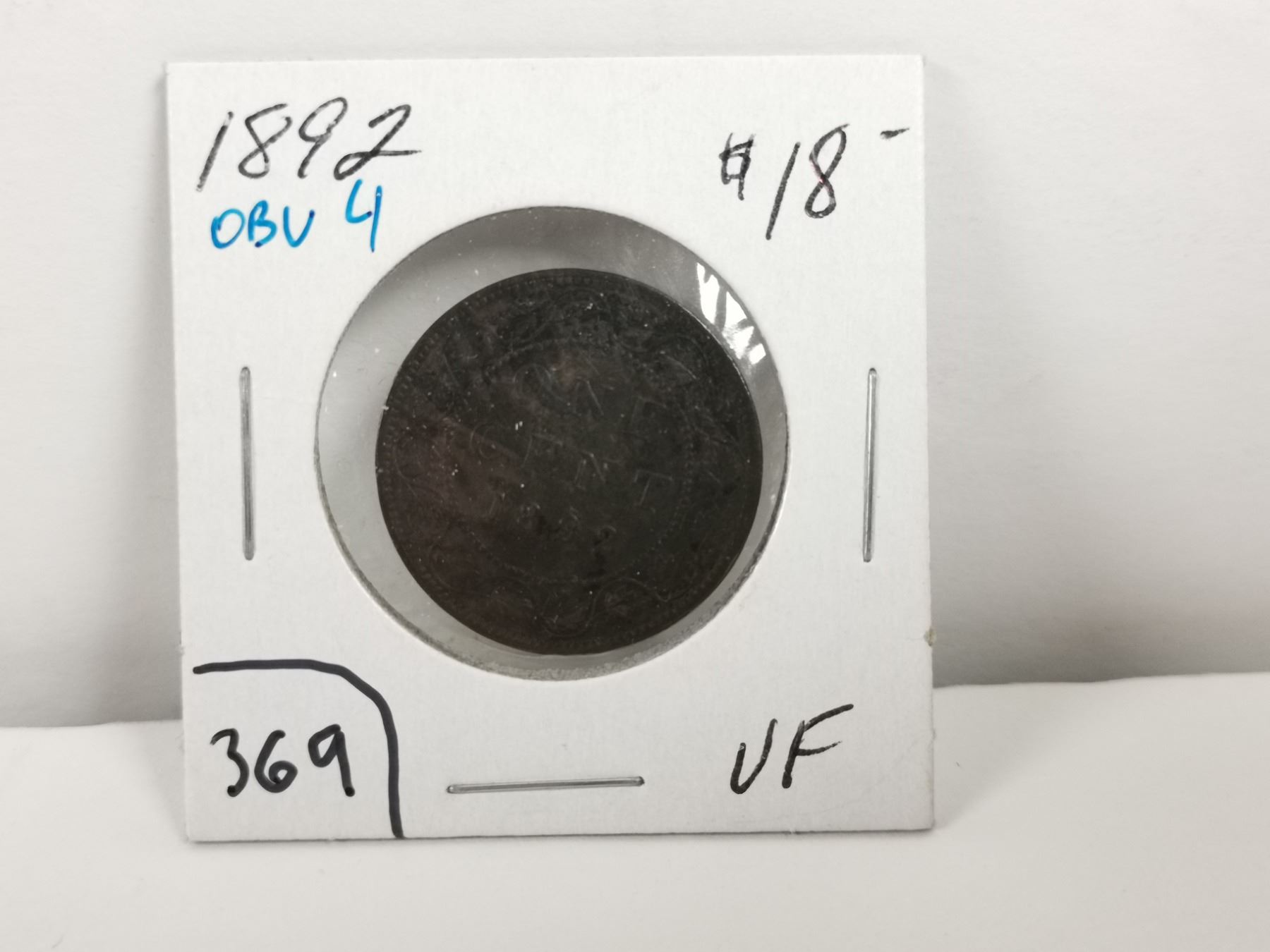 1892 OBV4 One cent coin, VF