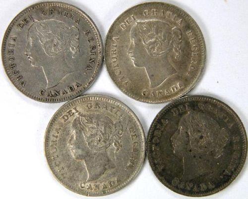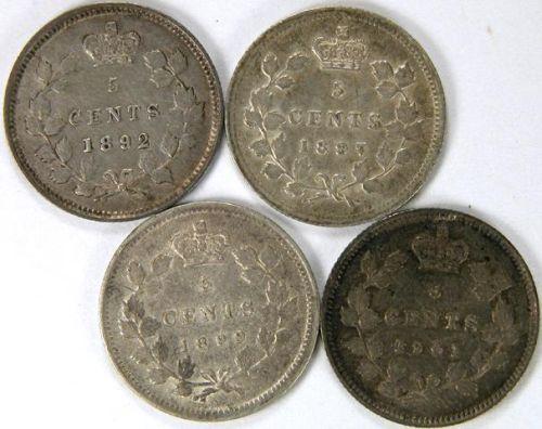 Canada Five Cents 1892 Obverse 2, 1897, 1899 and 1901, all EF. Light to Light-medium toned
