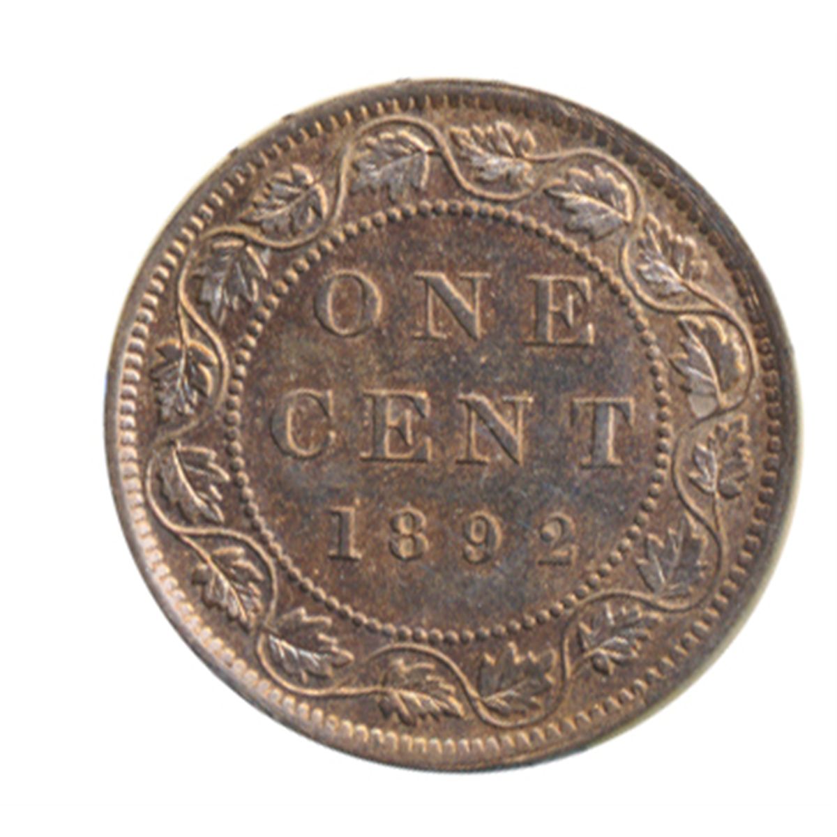 1892. Obv. port. #3. ICCS Mint State-63. Red-Brown. 25% red luster remaining.