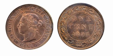 1892. Obverse port. #4. ICCS Mint State-63. Red-Brown. 40% luster. Interesting reflective fields.