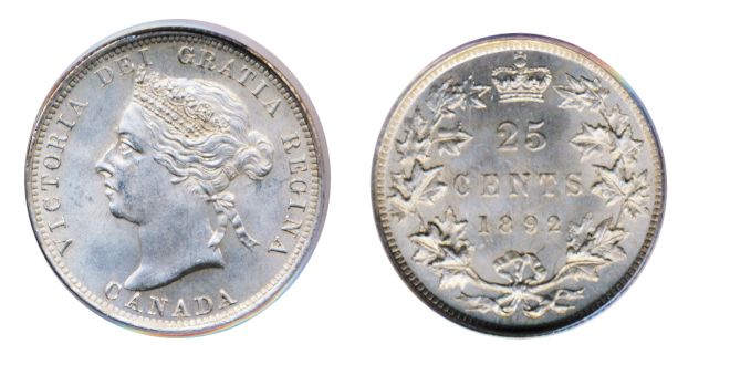 1892. PCGS graded Mint State-64. A brilliant, frosty example, with a fair coating of pale gold toning. A piece with a good strike and excellent ;eye appeal’.