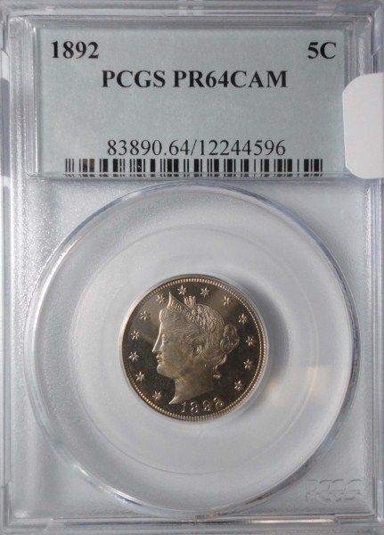 1892 PROOF LIBERTY NICKEL PCGS PF-64 CAMEO