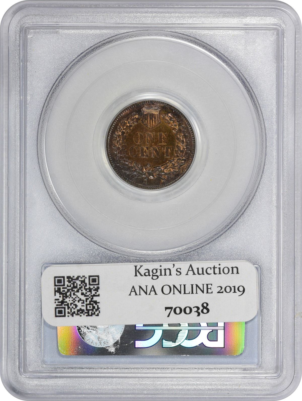 Reflective surfaces with varied iridescent blue and red highlights. PCGS #2363
