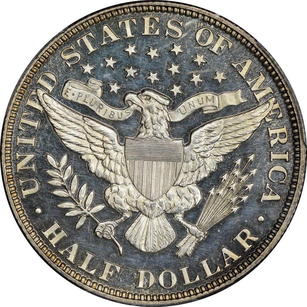 An exemplary Proof example of the first year of Barber half dollar coinage. The devices are frosty, the fields are reflective, and warm golden toning at the rims adds greatly to the visual enchantment. Pleasing for the grade with every turn.