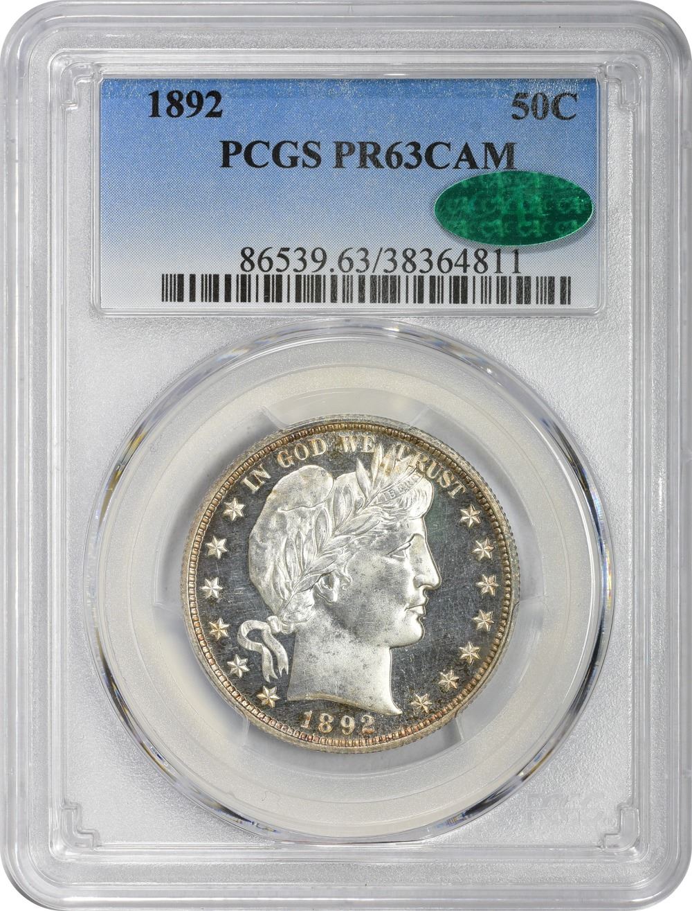1892 Proof-63 CAM PCGS. CAC.