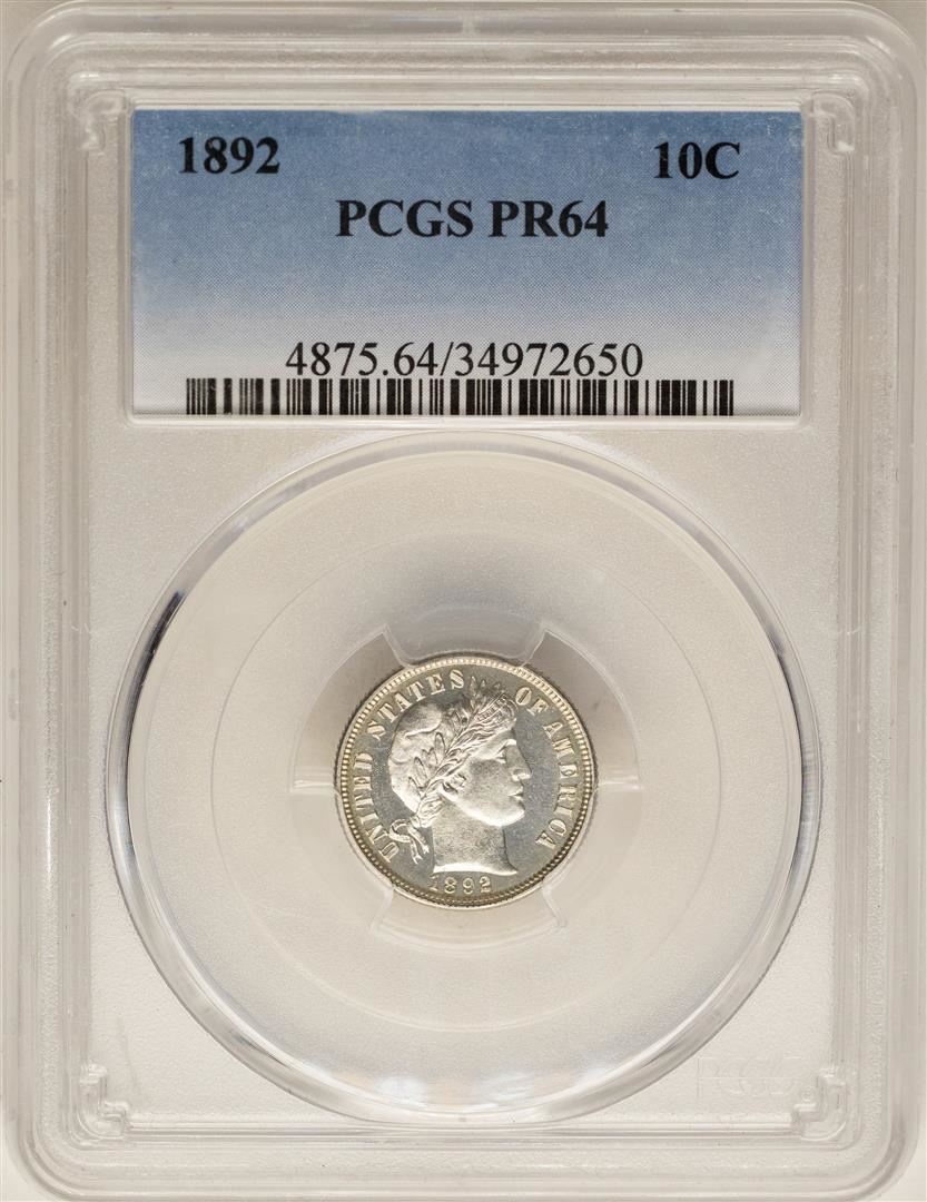 One 1892 Proof Barber Dime Coin PCGS PR64. PCGS Graded.