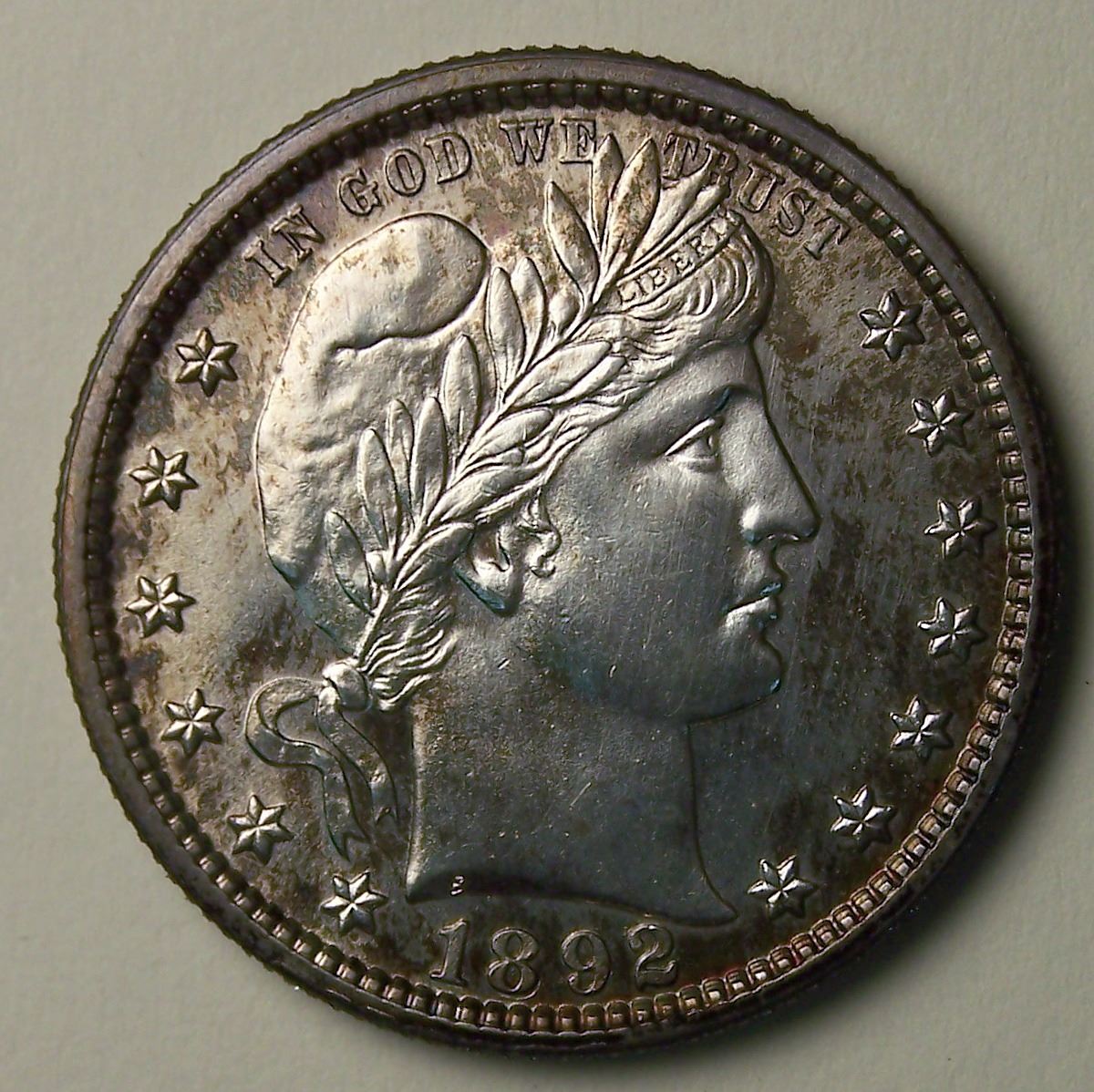 Barber. 2012 ANACS MS 60 details. Repunched date. Cleaned before 1970s. Handsomely patinated with plum tones complementing blazing white central figure on obverse, soft topaz halo on reverse. Pleasing, unusually blemish-free surfaces, and details judged solid for the grade.