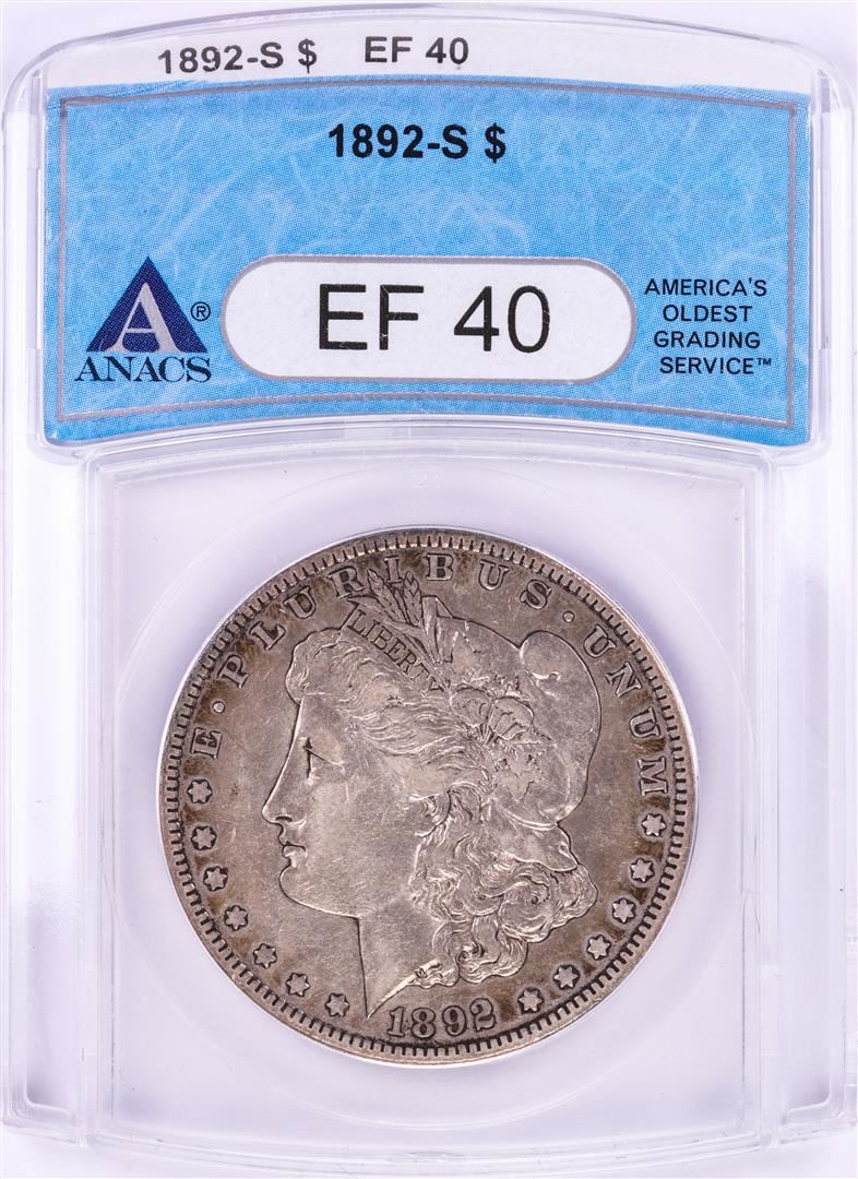 One 1892-S $1 Morgan Silver Dollar Coin ANACS XF40. ANACS Certified.