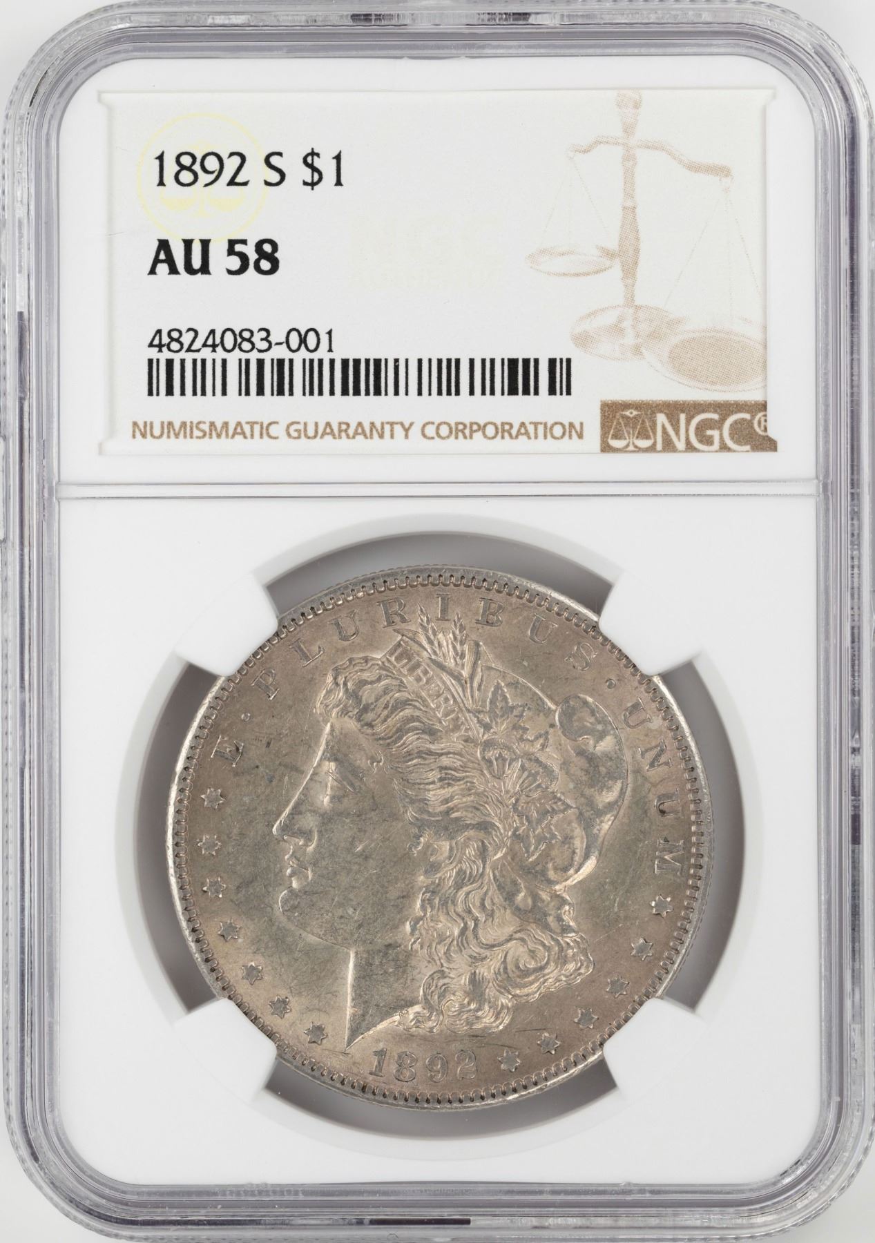 One 1892-S $1 Morgan Silver Dollar Coin NGC AU58.