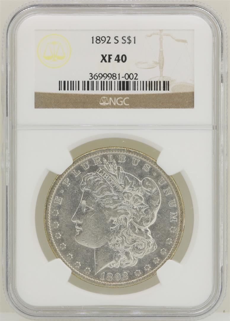 One 1892-S $1 Morgan Silver Dollar Coin NGC XF40. NGC Certified.