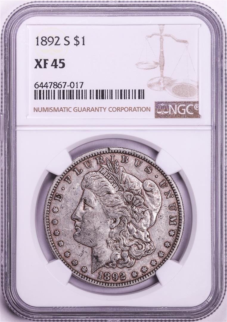 One 1892-S $1 Morgan Silver Dollar Coin NGC XF45. NGC Certified.