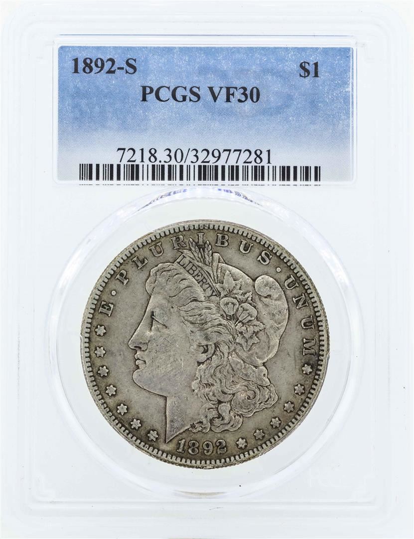 One 1892-S $1 Morgan Silver Dollar Coin PCGS VF30. PCGS Graded.