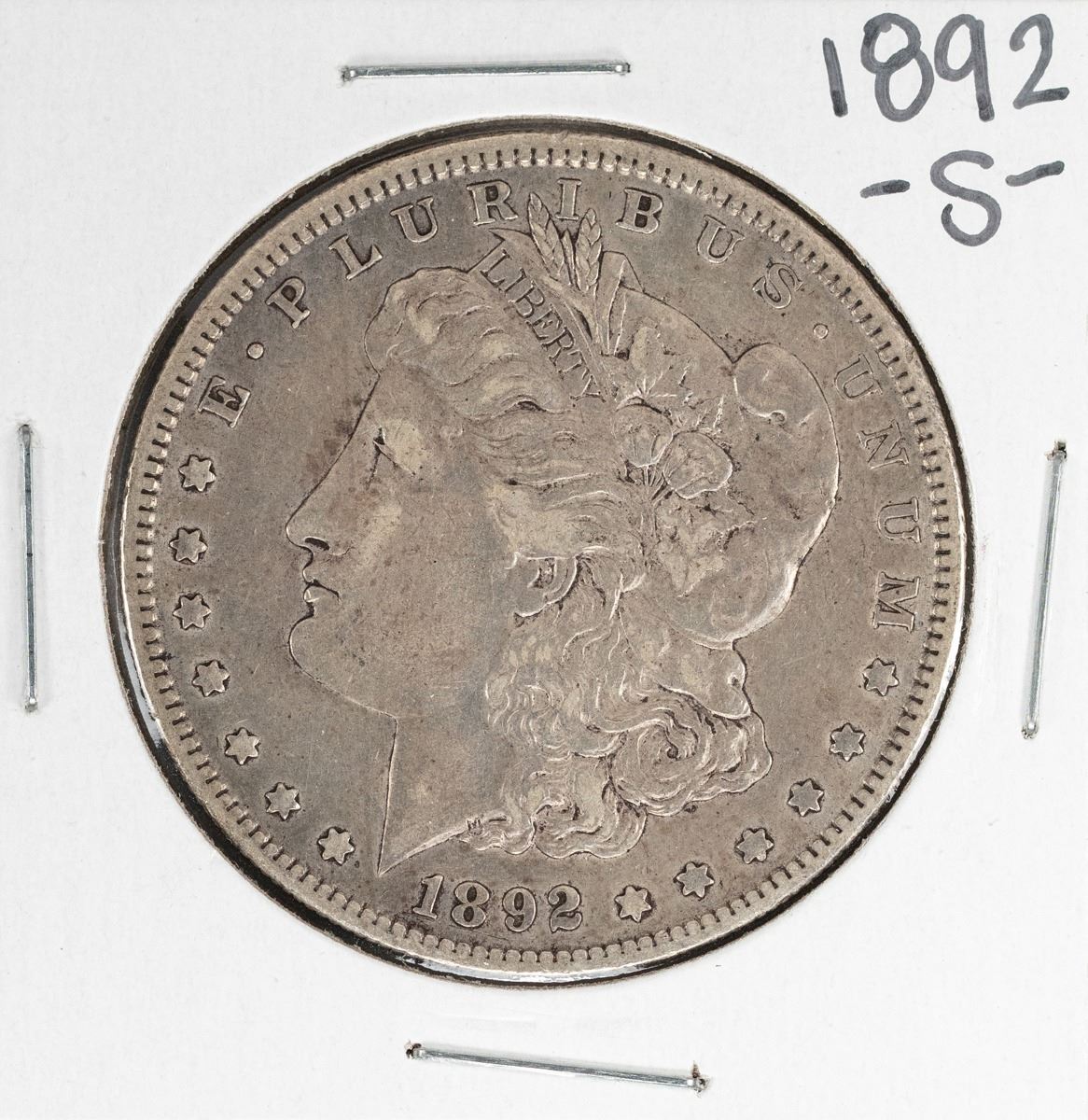 One 1892-S $1 Morgan Silver Dollar Coin.