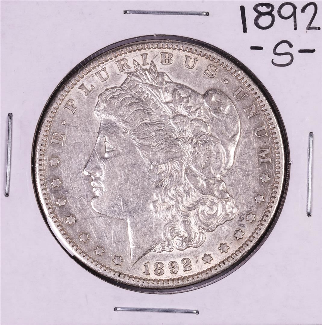 One 1892-S $1 Morgan Silver Dollar Coin.