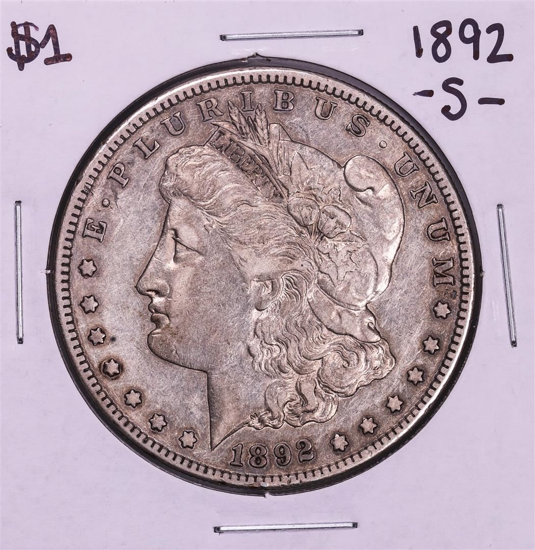 One 1892-S $1 Morgan Silver Dollar Coin.