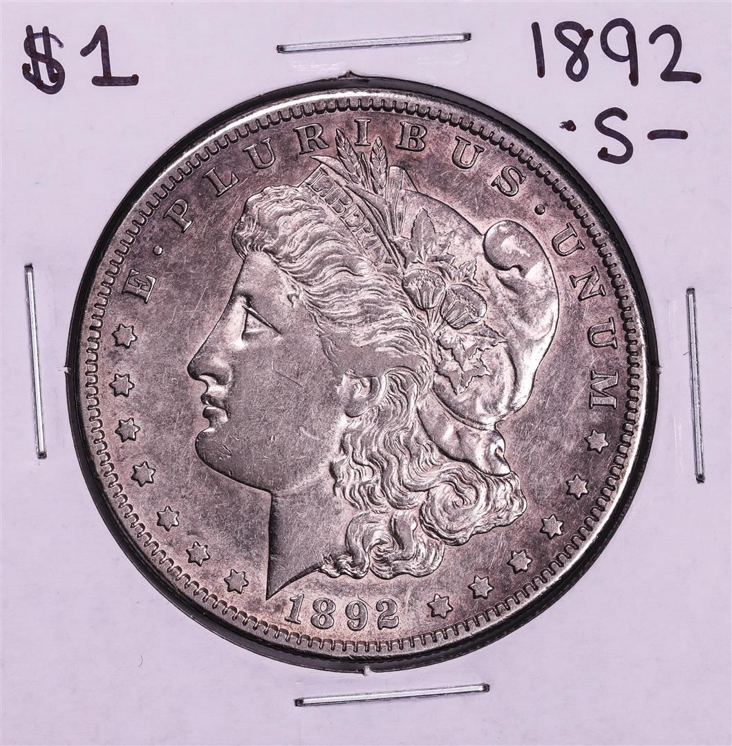 One 1892-S $1 Morgan Silver Dollar Coin.