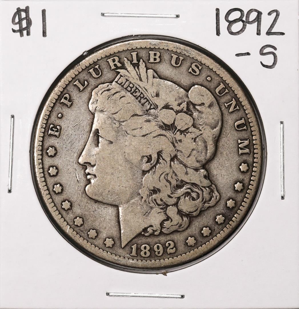 One 1892-S $1 Morgan Silver Dollar Coin.