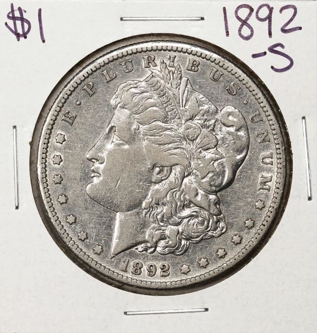 One 1892-S $1 Morgan Silver Dollar Coin.